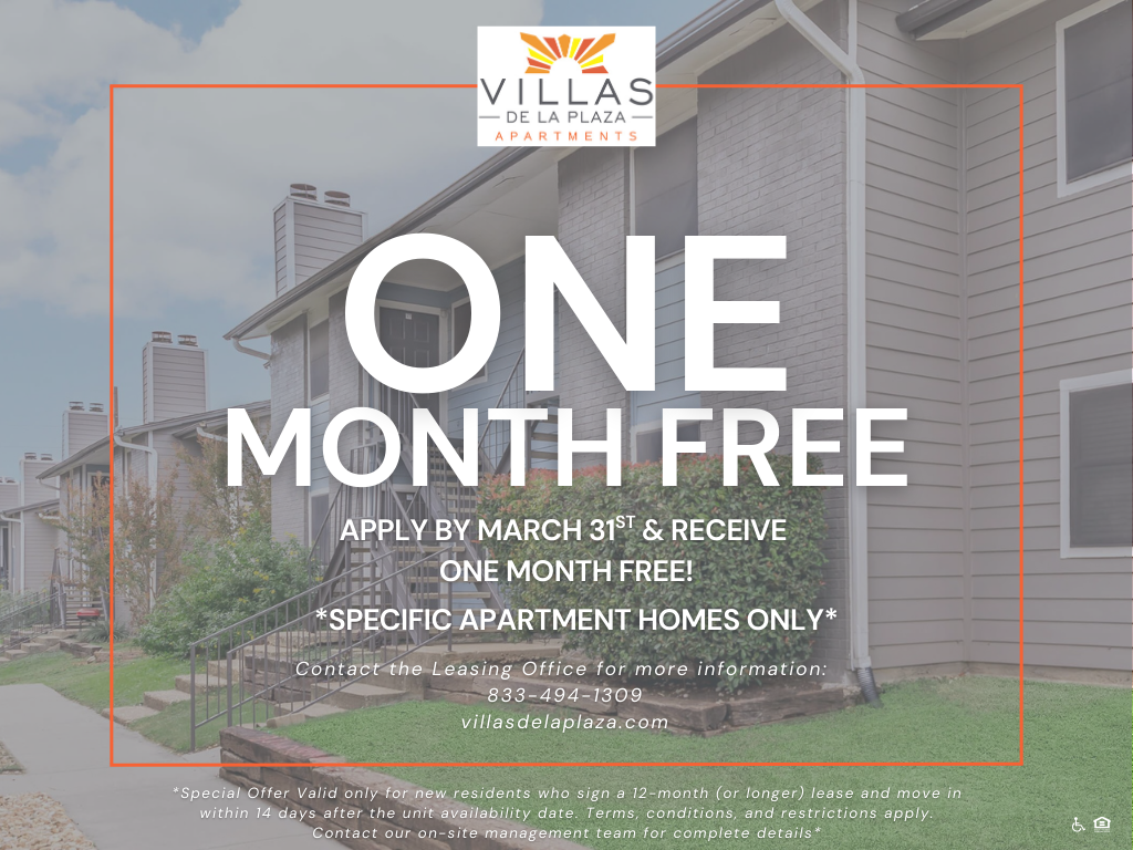 Apply by March 31st & receive one month free on 12+ month leases! Contact the Leasing Office for more information!⤵️ ¡Aplica antes del 31 de marzo y recibe un mes gratis más en contratos de arrendamiento de 12 meses o más!¡Contacta con la oficina de arrendamiento para más información! ⤵️